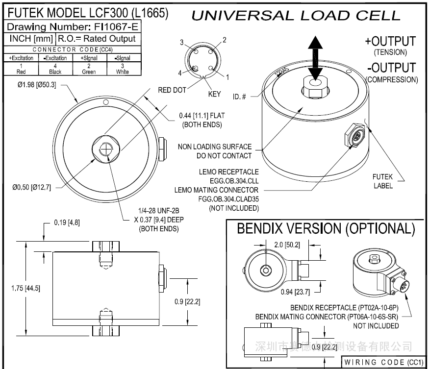 - 量程 44.48, 111.2, 222.4, 444.8, 1112, 2224 N
