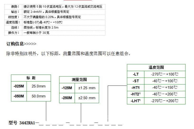标距为25毫米和50毫米,变形量测量范围为1.2毫米和2.5毫米。3442RA1型引伸计用于对小块岩石、混凝土及其他小试样的压缩试验。