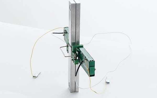 该引伸计专门用于ASTM D5656标准的剪切接头的标准试验方法,即拉伸载荷法测定剪切中胶粘剂应力-应变性能用厚被粘物金属搭接的剪切接头标准试验方法。测量试样的对边变形,然后得出两个读数的平均值。