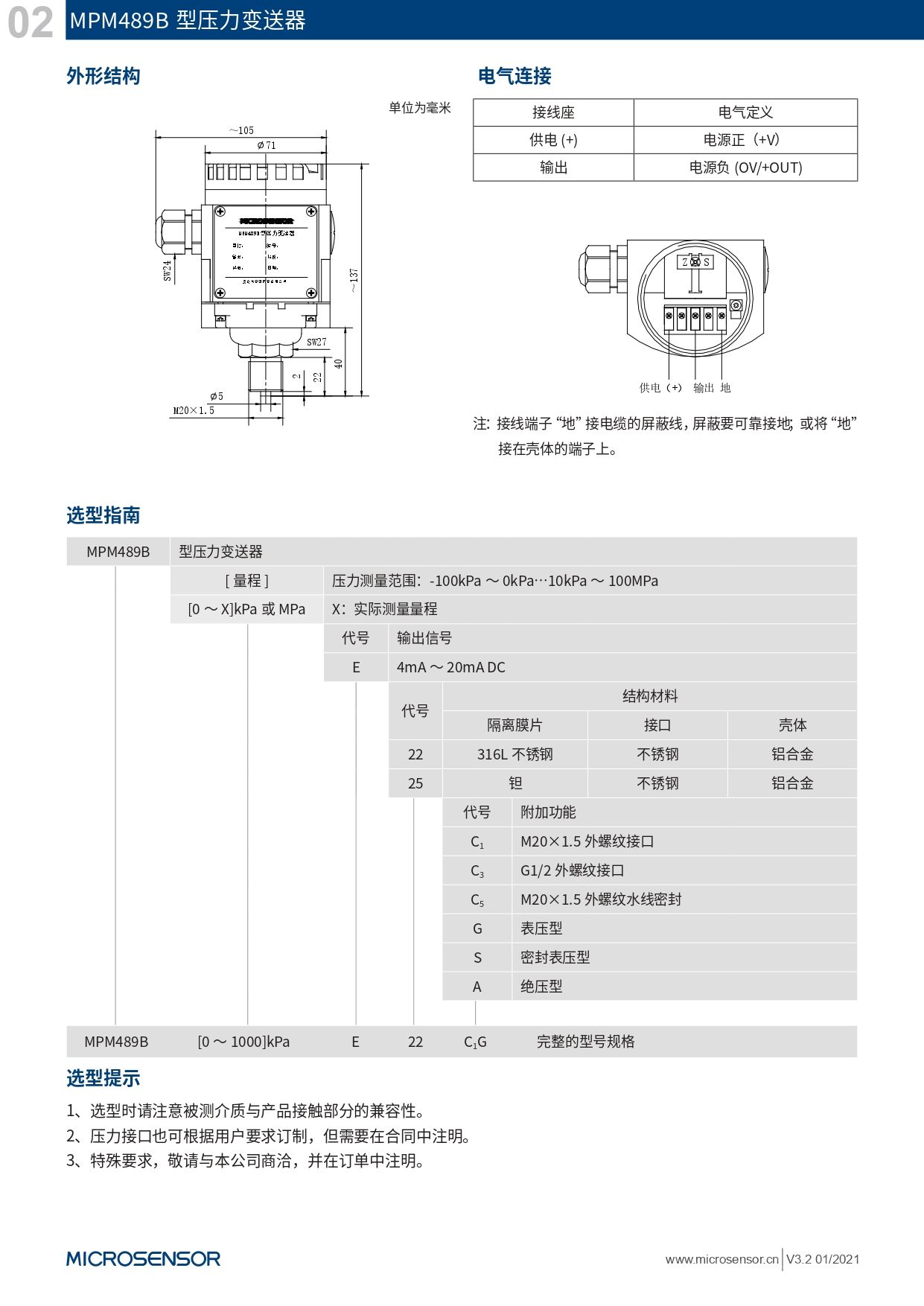 microsensor压力变送器MPM489B型