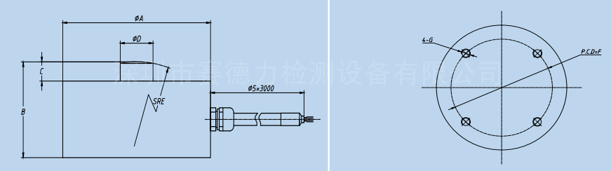 量程/CPA(KN) ∅A B C ∅D E F G 重量/Weight(Kg) 5-30 72 40 8 16 50 56 M5 Deep8 0.6 50-75 106 40 10 26 80 90 M56Deep10 2.2 100-150 116 65 15 30 100 98 M8 Deep12 3.3 200-250 138 75 15 40 150 115 M8 Deep12 5.2