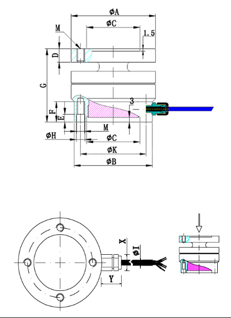 量程 A B C D E F G H K X Y I J Z M 0.5-10KN 54 50 34 8.5 5 13 47 5.5 42 10 13 3 9 9 8-M5 20-100KN 95 90 55 15 2.2 20 72 11 70 15.7 14 5 10.5 14 16-M10