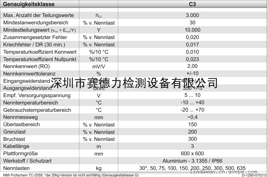 - 根据 OIML R60 ,NMI 认证长达 3,000 天