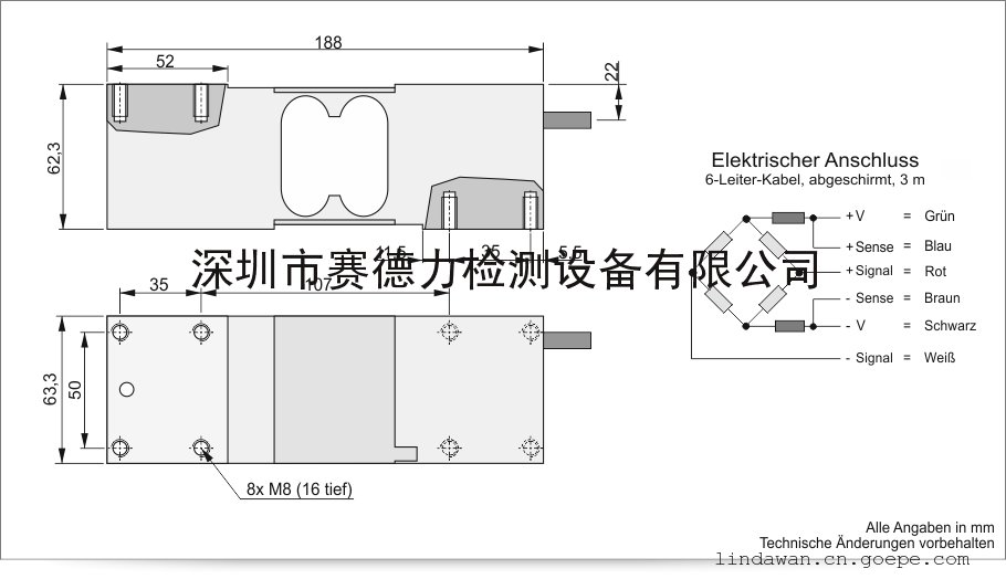 1260 型有一个称重传感器一种机械双连杆系统,也称为平行四边形,用于在偏心施加力时补偿扭转力。每个单独的称重传感器都经过角负载灵敏度测试,并通过复杂的机械加工进行了优化。因此,即使要测量的质量位于平台的一侧,例如角落,也不会出现测量误差。使用此称重传感器构建台秤非常简单。将两块*大 600 x 600 mm 的钢板或铝板拧到电缆出口顶部前部或后底部的两个螺纹表面上,并连接相应的应变计测量设备或测量放大器 - 秤准备就绪。