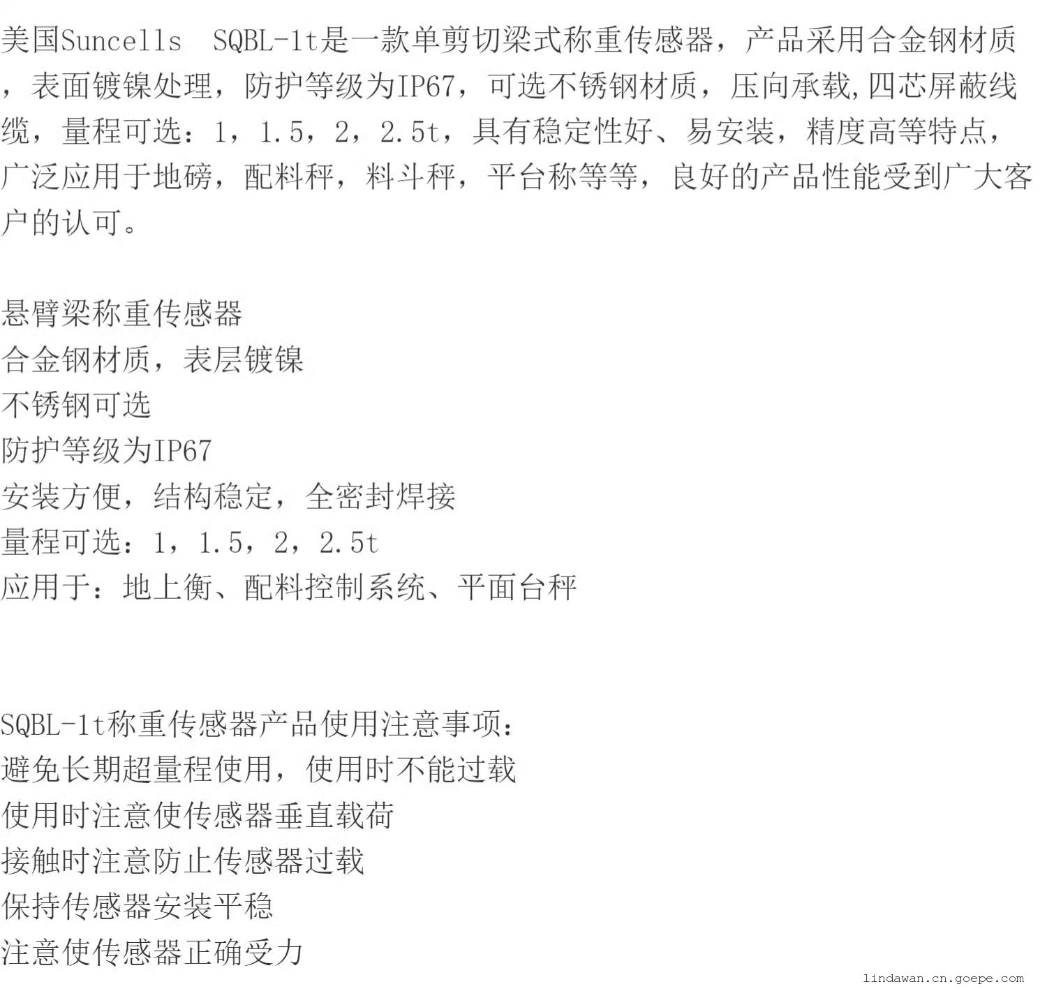 美国Suncells称重传感器SQBL-1t SQBL-1.5t SQBL-2t SQBL-2.5t