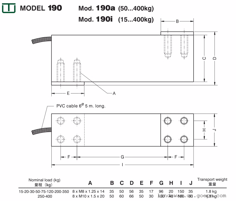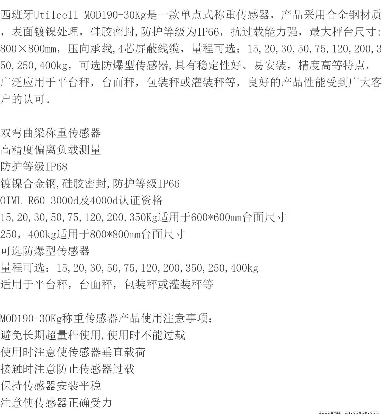 产品型号: MOD190-15kg,20kg,30Kg,50kg,75kg 品 牌: 西班牙Utilcell -