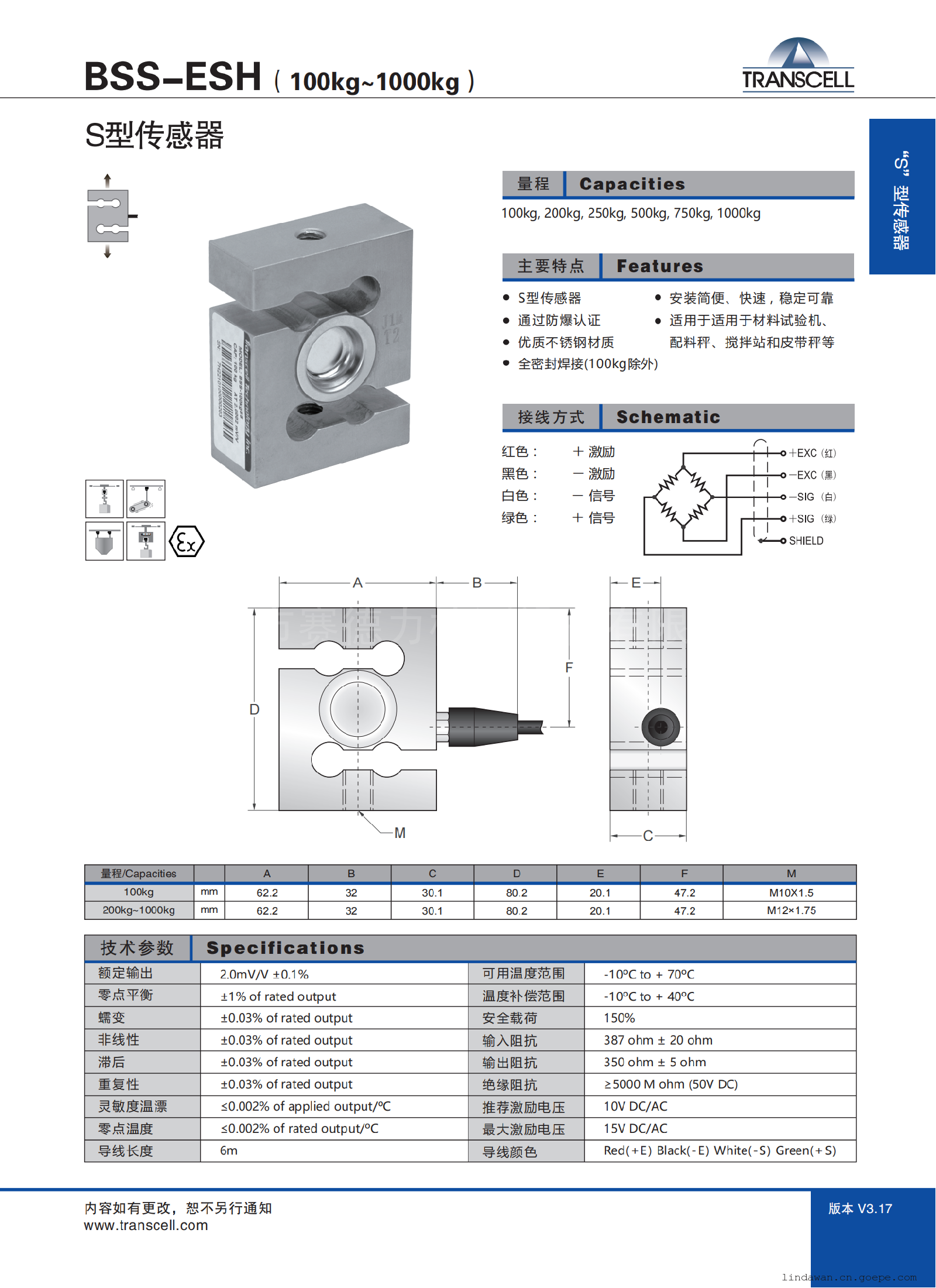 美国传力称重传感器 BSS-2.5tSS ESH,BSS-3tSS ESH,BSS-5tSS ESH