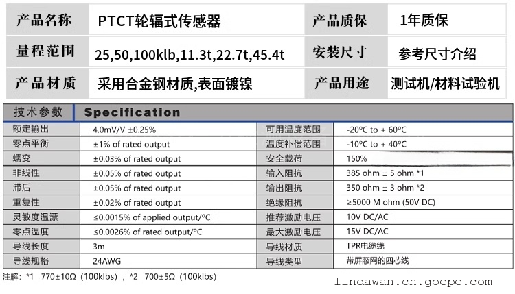 美国Transcell传力称重传感器PTCT-11.3t,PTCT-22.7t,PTCT-45.4t