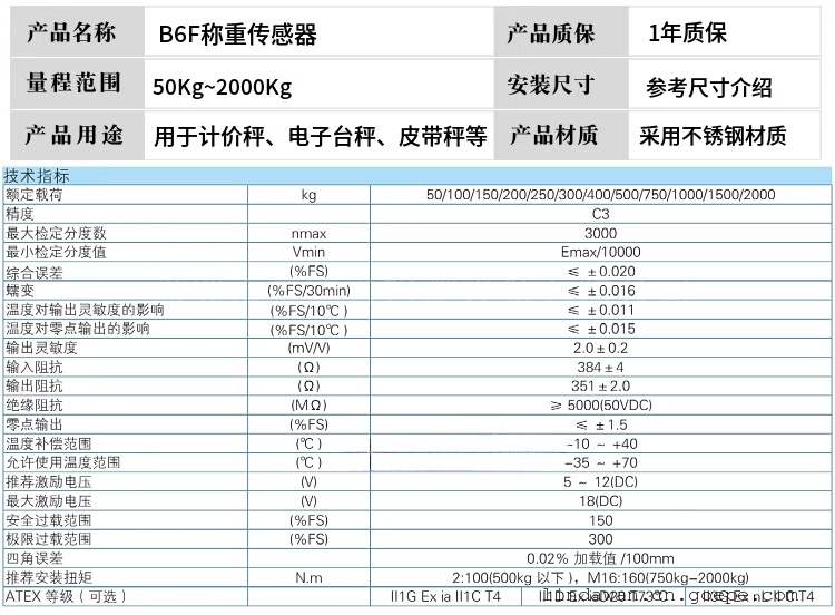 产品型号: B6F-C3-1500kg-3B6,B6F-C3-2000kg-3B6 品 牌: 美国ZEMIC -