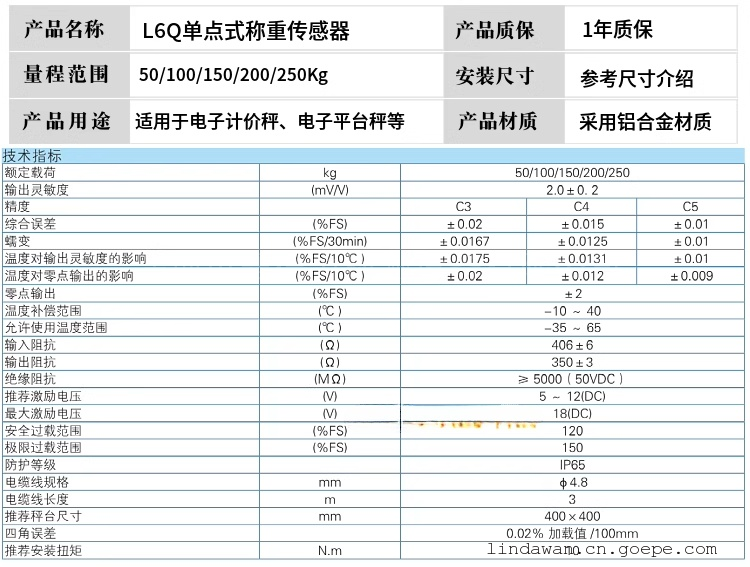 产品型号: L6Q-C3-50Kg-3B6,100Kg,150Kg,200Kg,250Kg 品 牌: 美国ZEMIC -