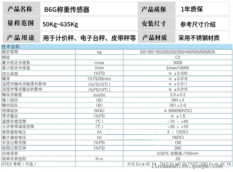 产品型号: B6G-C3-150kg-3B6,B6G-C3-200kg-3B6 品 牌: ZEMIC 中航电测 -