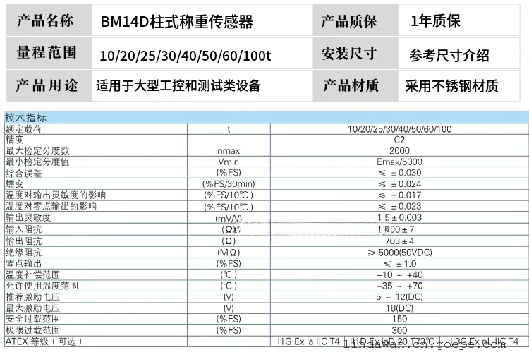 产品型号: BM14D-C2-10t-20B,20,25,30,40,50,100t 品 牌: 美国ZEMIC -