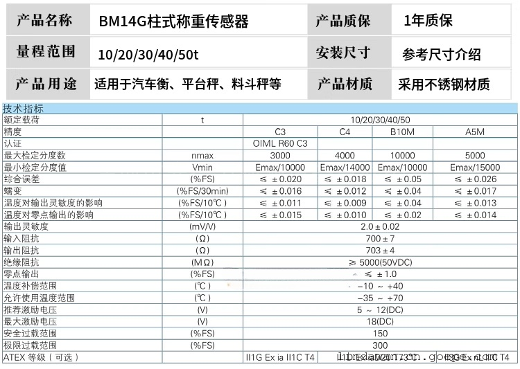 产品型号: BM14G-C3-10t-15B-SC,20t,30t,40t,50t 品 牌: ZEMIC 中航电测 -
