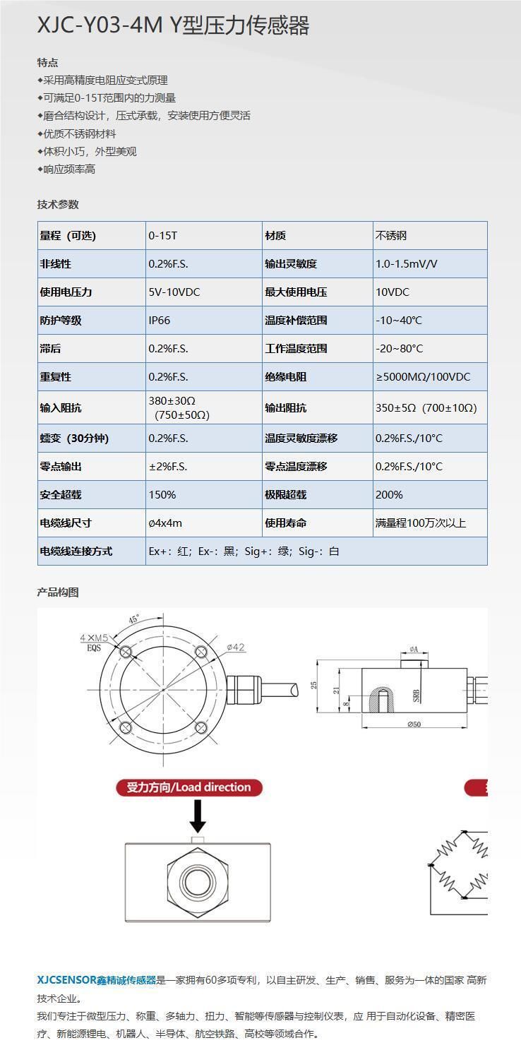 品牌:鑫精诚 | 型号:XJC-Y03-4M Y型压力传感器 | 加工定制:是 | ||||