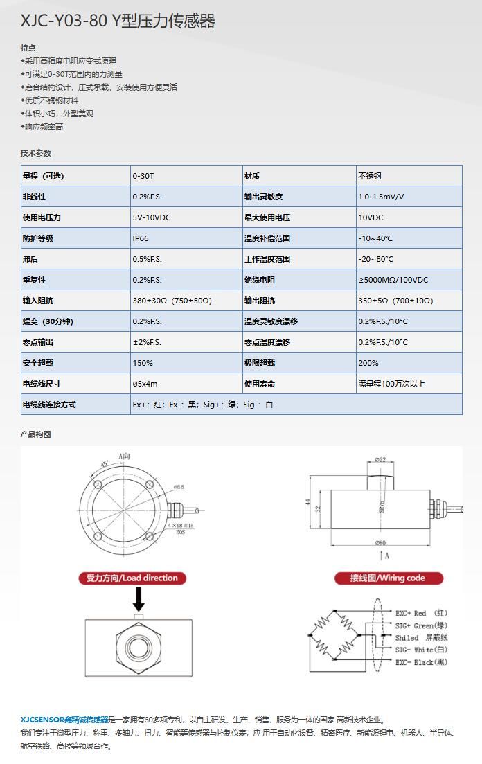 品牌:鑫精诚 | 加工定制:是 | 型号:XJC-Y03-80 Y型压力传感器 | ||||