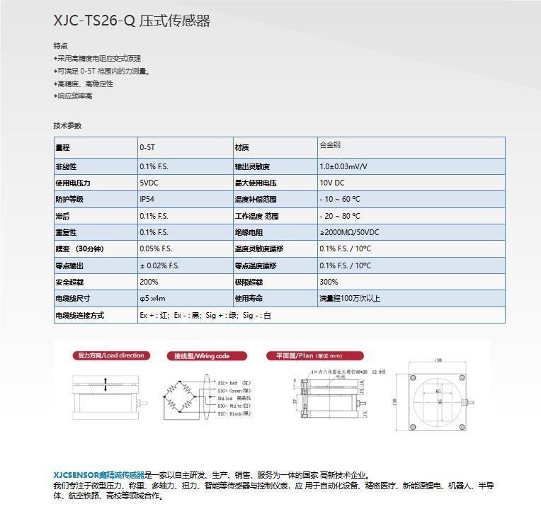 | 品牌:鑫精诚 | 加工定制:是 | 型号:XJC-TS26-Q 压式传感器 | ||||