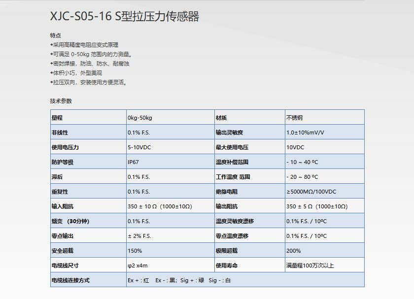 详细信息| 询价留言品牌:鑫精诚 加工定制:是 型号:XJC-S05-16 S型拉压力传感器 制作工艺:集成 输出信号:模拟型 材料:金属 材料物理性质:导体 材料晶体结构:单晶 防护等级:ip65 线性度:0.5 %F.S 迟滞:0.2 %F.S 重复性:0.5 %F.S 灵敏度:2 迟滞:0.2 %F.S 重复性:0.5 %F.S -