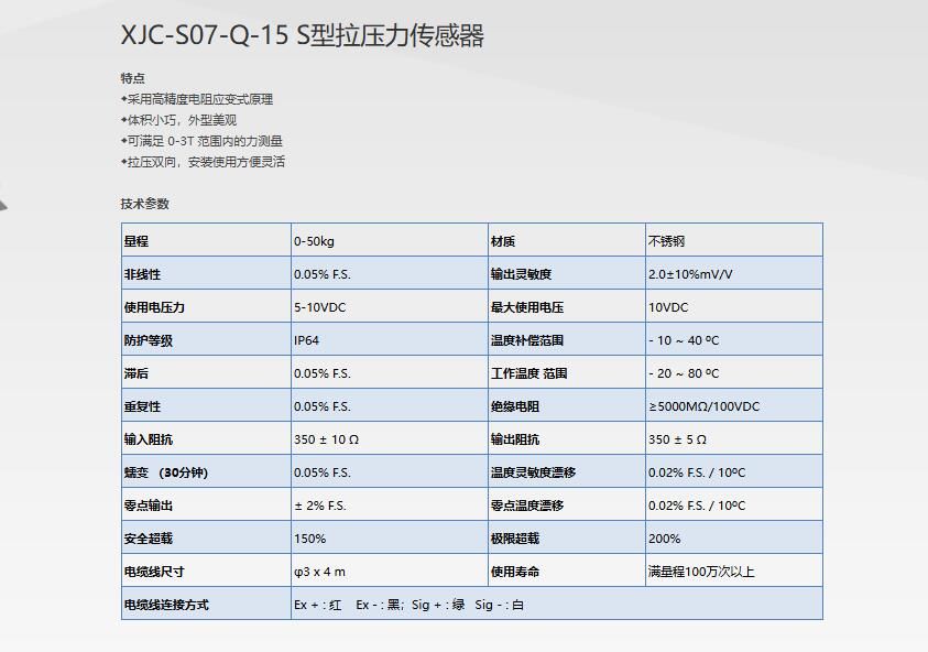 | 灵敏度:2 | 分辨率:0.001 | 重复性:0.5 %F.S |