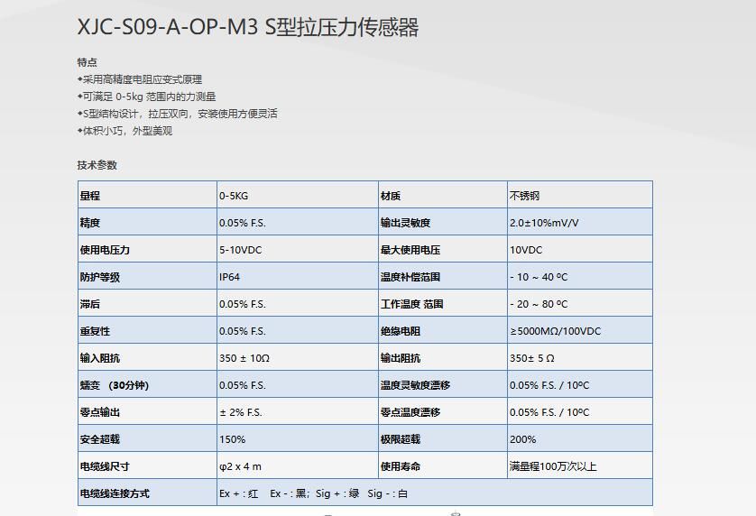 | 灵敏度:2 | 分辨率:0.001 | 重复性:0.5 %F.S |