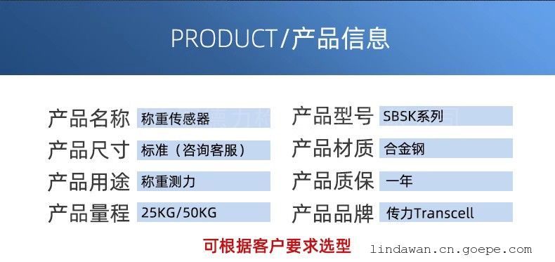 传力Transcell SBSK-25KG SBSK-50KG悬臂梁传感器